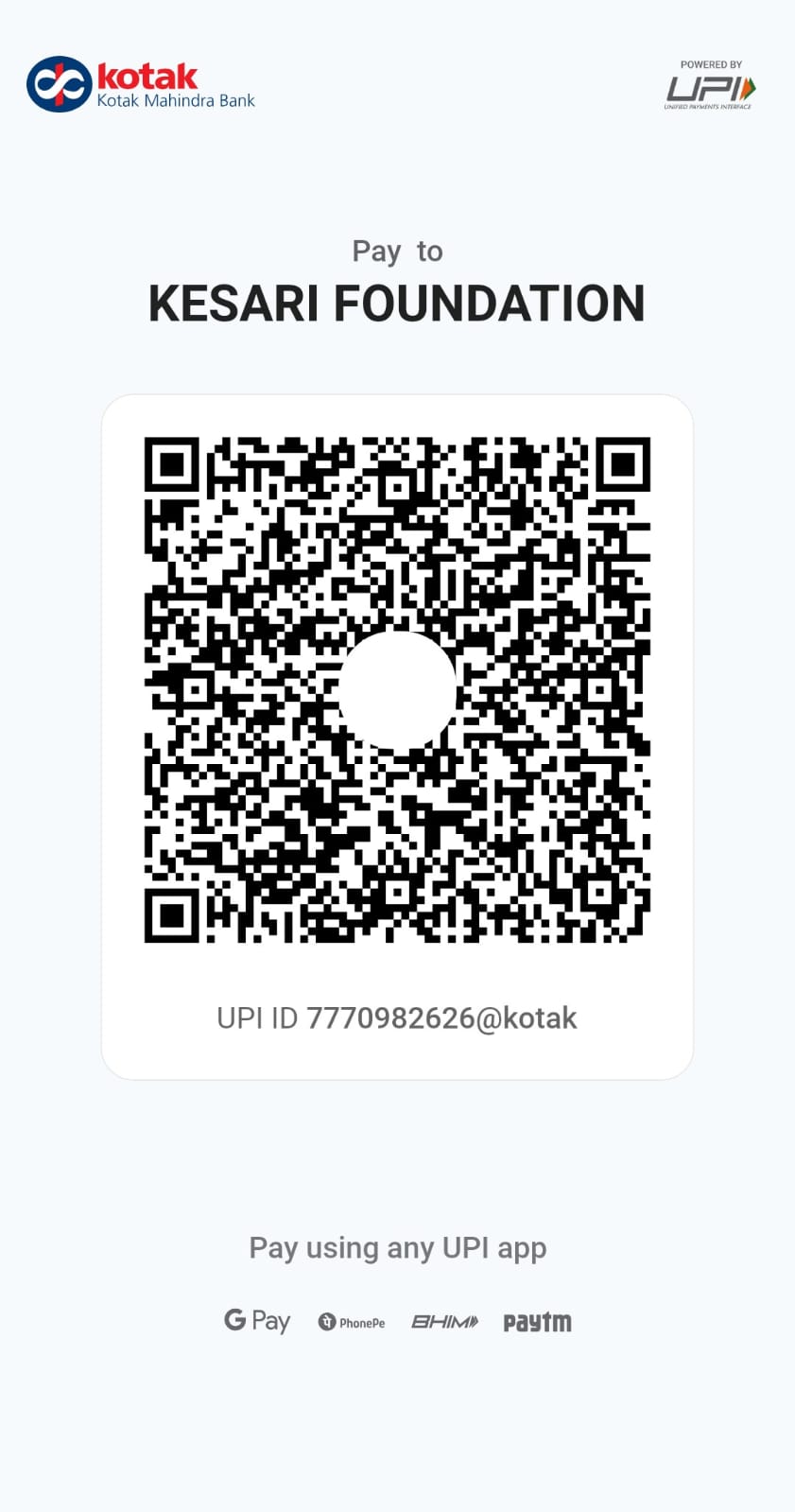 | UPI ID | : | 7770982626@kotak |